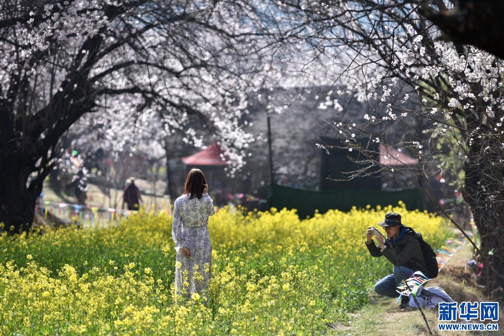 3月27日,游客在林芝市嘎拉村觀賞盛開的桃花。新華社記者 孫瑞博 攝