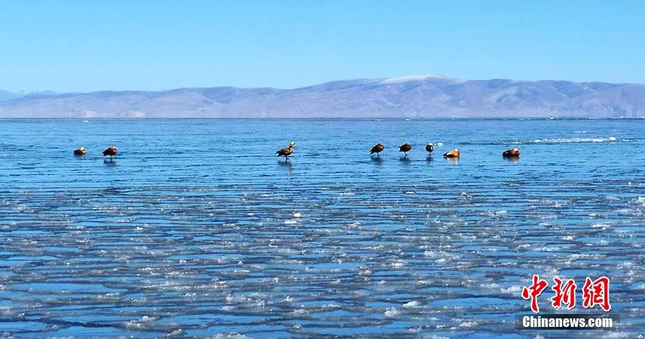青海湖通常每年12月中旬開始進(jìn)入封凍期,至次年4月中旬完全解凍,封凍期歷時(shí)5個(gè)月左右。趙海梅 攝