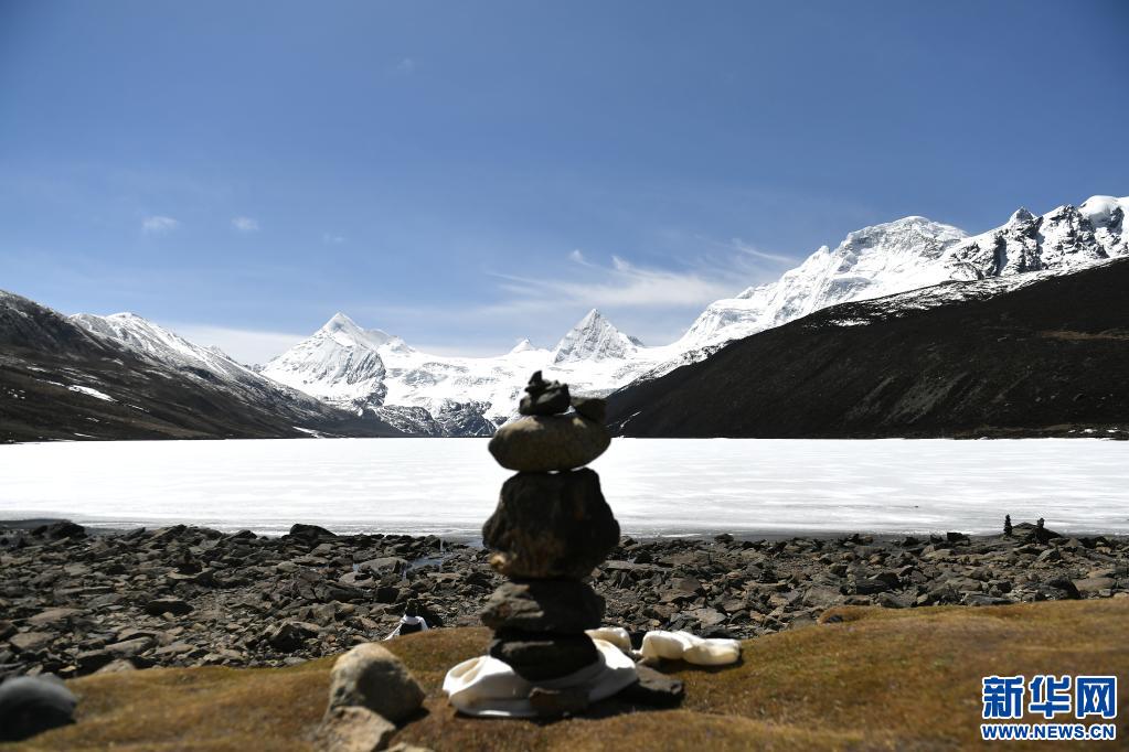 這是5月4日拍攝的薩普雪山和雪山腳下的冰湖(無(wú)人機(jī)照片)。新華社記者 孫瑞博 攝