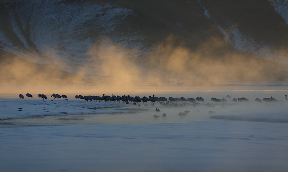 鶴舞雪域。益西旦增攝