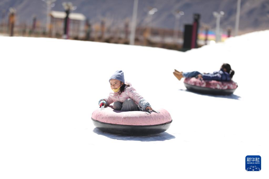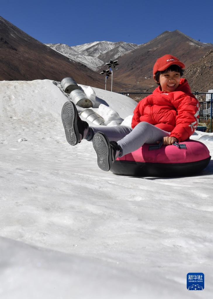 近日,西藏拉薩郊區(qū)一游樂場開設冰雪運動體驗場,讓更多人感受冰雪的樂趣。