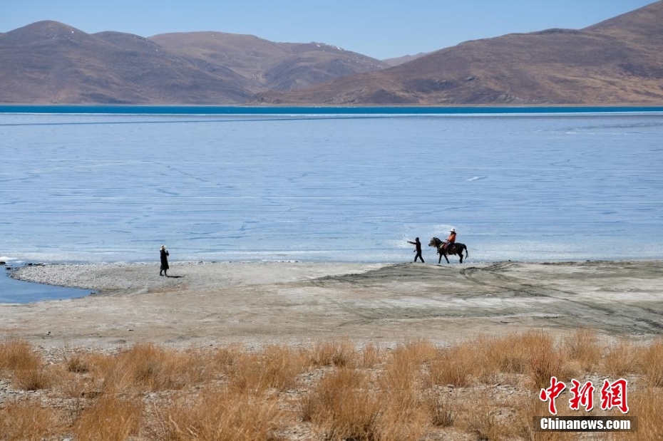 西藏“圣湖”入春 半湖冰雪半湖濤