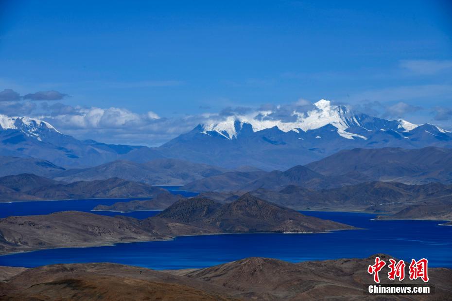 站在直拉山口俯瞰羊卓雍措,深邃藍(lán)的湖水似鑲嵌山間的藍(lán)寶石,與遠(yuǎn)處的庫拉崗日雪山形成一幅壯美圖卷。圖為羊卓雍措。 李林 攝