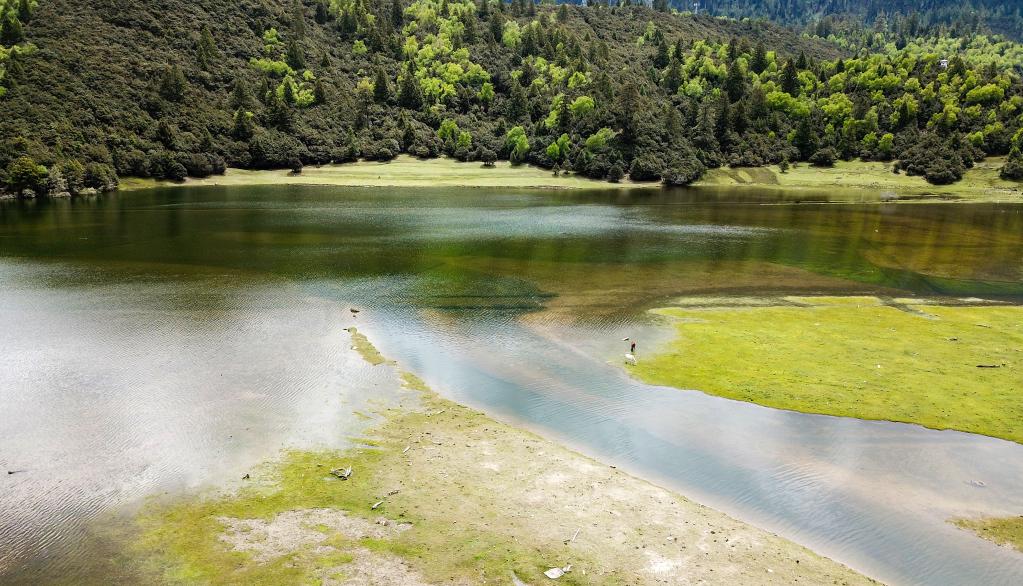 這是位于林芝市巴宜區(qū)魯朗鎮(zhèn)的一片濕地(5月31日攝,無人機(jī)照片) 。新華社記者 姜帆 攝