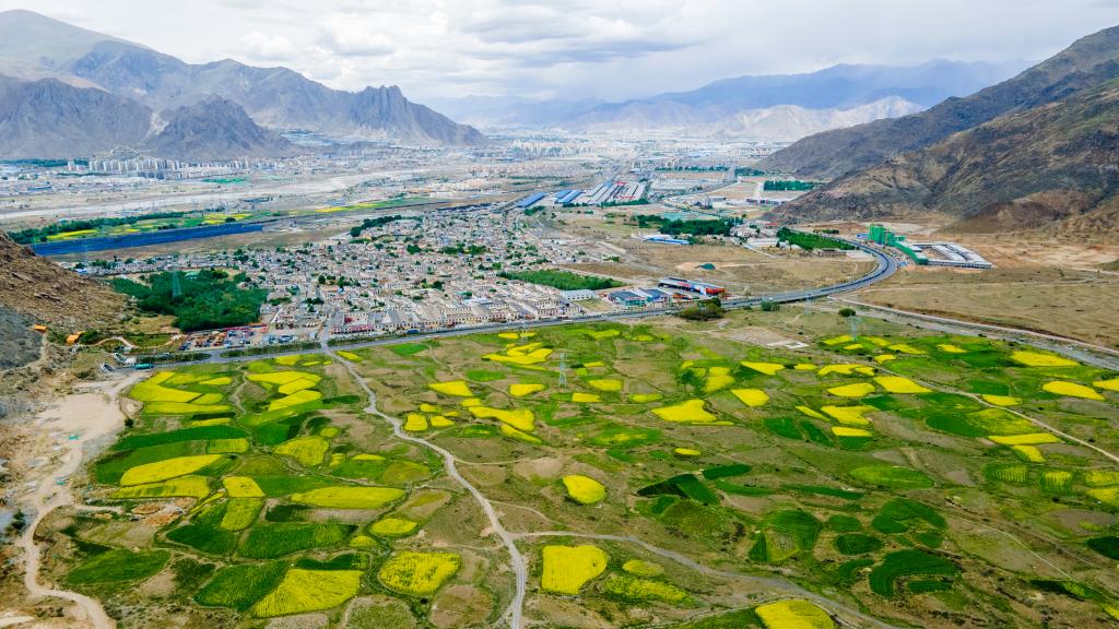 6月9日拍攝的拉薩田園風(fēng)光(無人機(jī)照片)。新華社記者 周荻瀟 攝