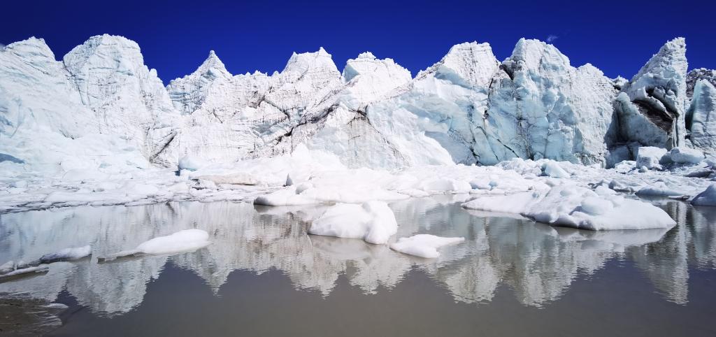 這是位于山南市浪卡子縣的卡若拉冰川,冰川融水形成河流(6月3日攝,無人機(jī)照片)。新華社記者 沈虹冰 攝