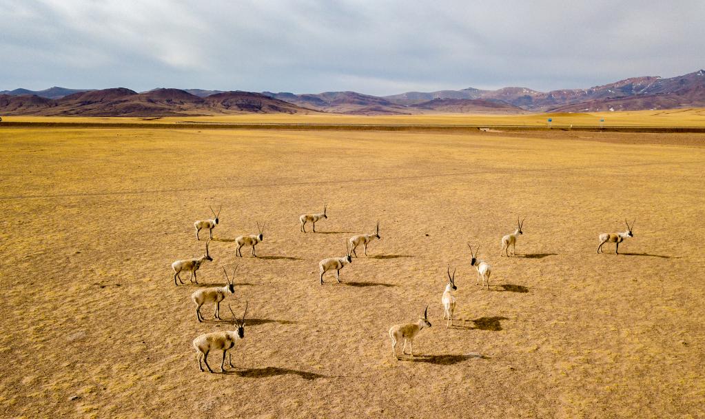 這是在阿里地區(qū)改則縣拍攝到的藏羚羊(4月13日攝,無人機(jī)照片)。公報(bào)顯示,藏羚羊種群數(shù)量由20世紀(jì)最低谷時(shí)的7萬余只增至30萬余只。新華社記者 姜帆 攝