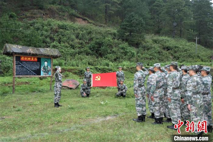 官兵正在彈奏自編歌曲《青春高原》。陸文凱 攝影報道
