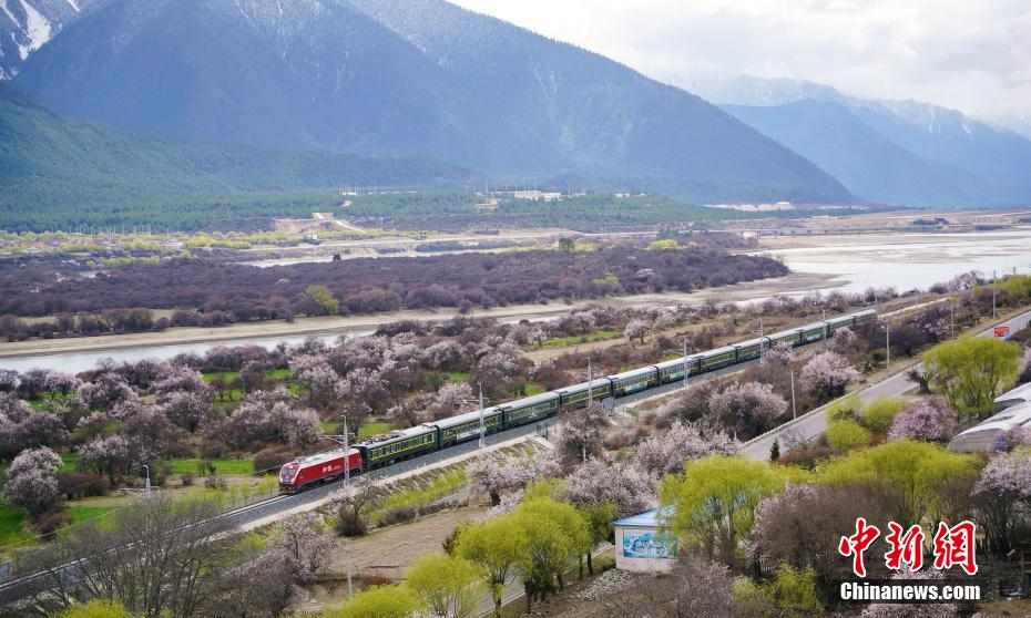 近日,中國鐵路青藏集團有限公司介紹,3月下旬至4月,拉林鐵路沿線綿延的野生桃花林盛開,藍天、白云、桃花、雪山、高原復興號動車等相互交織,形成了一幅幅美不勝收的畫面。[詳細] -