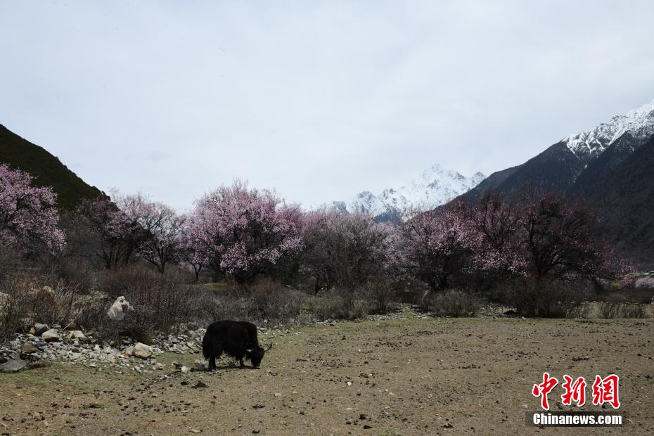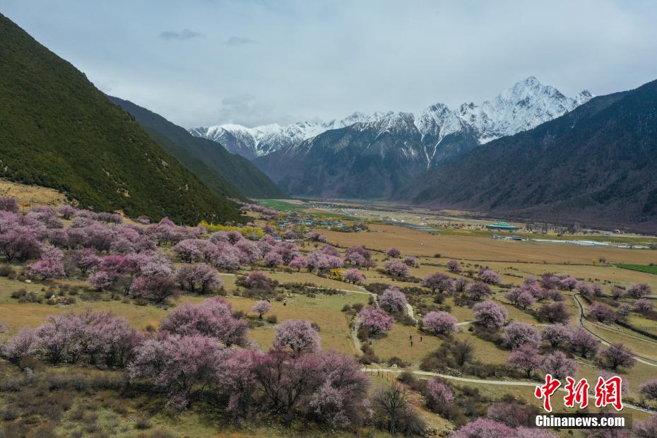 4月14日,西藏小“江南”林芝市工布江達縣桃花正盛放。這里海拔3400多米,森林覆蓋,雪山映照,桃花花期比西藏其他地方的更晚一些。當?shù)剞r(nóng)牧民靠著“桃花旅游”增收。這里緊鄰國家森林公園、國家5A級旅游景區(qū)巴松措,是很多游客必打卡之地。林芝桃花節(jié)最負盛名,已舉辦20屆,各地桃花花期相繼從3月底一直至4月中旬,吸引著來自五湖四海的游客。圖為桃花盛放,遠處雪山映照。貢嘎來松 攝