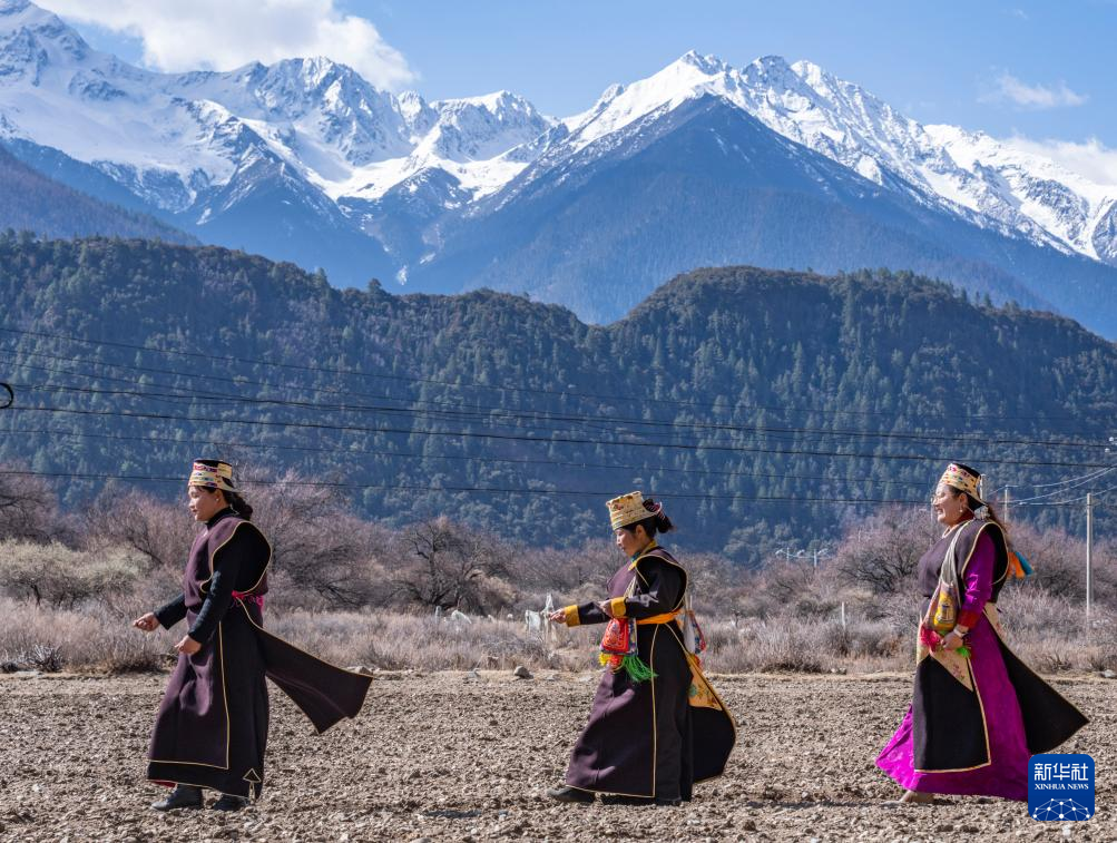 這是3月16日拍攝的西藏林芝市工布江達(dá)縣巴河鎮(zhèn)秀巴村的春耕儀式現(xiàn)場。新華社記者 孫非 攝
