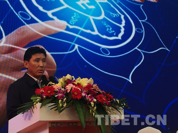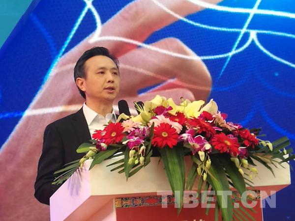 拉薩市市長果果在展會上代表拉薩市委、市政府講話。他說,希望把一個區(qū)位獨特、資源豐富、潛力巨大的新拉薩介紹給各位,把拉薩大力發(fā)展以“凈水、凈土、凈空、凈心”四凈為核心的凈土健康產(chǎn)品推介給各位。