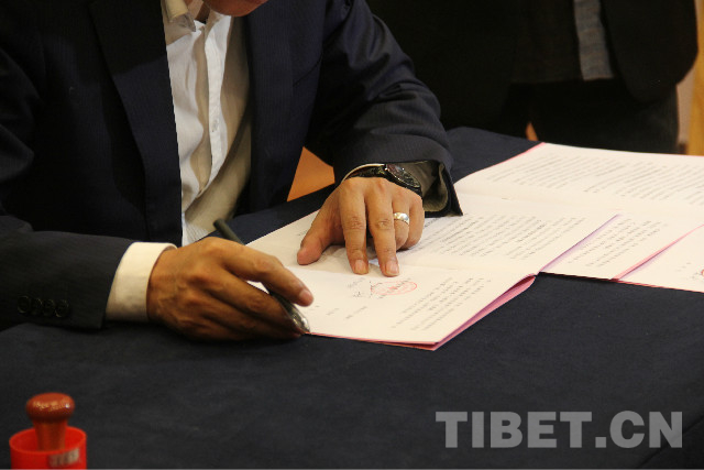 圖為涉旅企業(yè)代表簽訂2018年安全生產(chǎn)責(zé)任書 攝影:加措