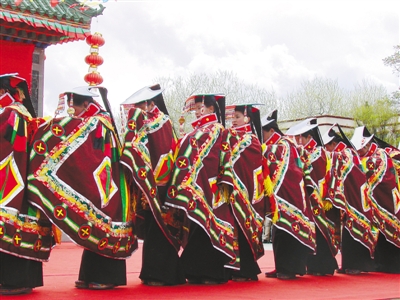 西藏傳統(tǒng)歌舞文化是藏族文明發(fā)展的產(chǎn)物,與藏族人民的風俗習慣、宗教信仰等密切相關(guān),深深地滲透在人們的生產(chǎn)生活中。近年來,國家和地方非物質(zhì)文化遺產(chǎn)等有關(guān)部門對西藏傳統(tǒng)歌舞的相關(guān)器樂、服飾、道具、音樂、舞蹈、歌詞內(nèi)容等進行搜集和整理,切實做好西藏特色傳統(tǒng)文化的保護、傳承和發(fā)展。圖為西藏民間舞神冬洛熱巴四傳人。圖片來源:中國西藏網(wǎng),孫明光攝。(中國西藏網(wǎng) 綜合/李泓慶)