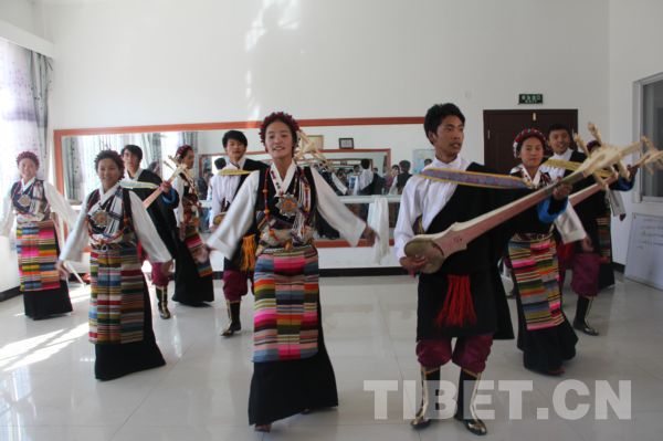 “堆”藏語意為上,“堆諧”指的是流傳于雅魯藏布江上游地區(qū)用藏族六弦琴為伴奏樂器、以踢踏舞步為舞蹈特色的一種歌舞藝術(shù)形式。表演者一邊彈奏六弦琴,一邊歡快靈巧地跳舞。表演人數(shù)多則千人,少則幾十人,一般表演者越多,效果越好。日喀則拉孜縣一直以來被西藏人民視為“堆諧的故鄉(xiāng)”。圖為拉孜縣學生進行“堆諧”舞蹈彩排。圖片來源:中國西藏網(wǎng)