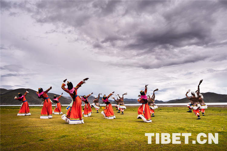 藏民族是一個天性能歌善舞的民族。藏族舞蹈種類繁多,有些已有幾百年甚至上千年的歷史;各地區(qū)的舞蹈形態(tài)和動作也不盡相同??赐杲裉斓慕榻B,相信大家對藏民族的舞蹈文化會有更深的認識。圖為藏族百姓在草原上載歌載舞。圖片來源:中國西藏網(wǎng),姚陽攝。