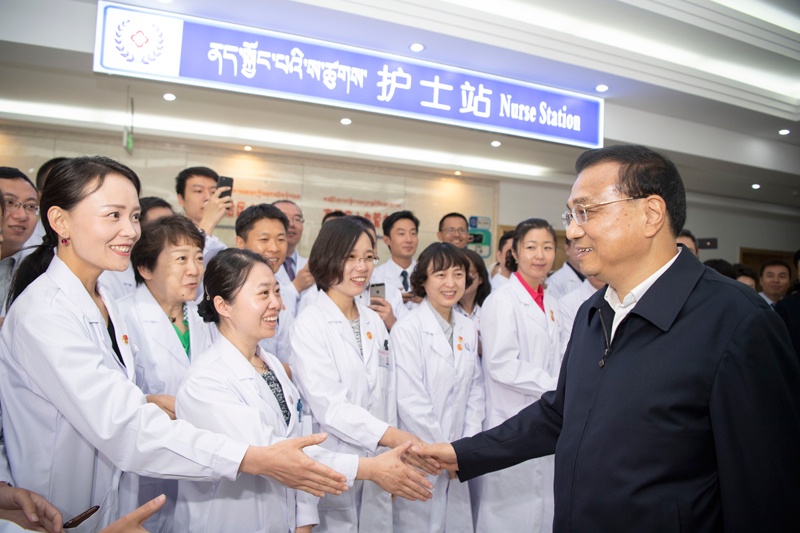 7月27日,李克強(qiáng)總理來到西藏自治區(qū)人民醫(yī)院,看望慰問援藏醫(yī)護(hù)人員。來源:中國政府網(wǎng)
