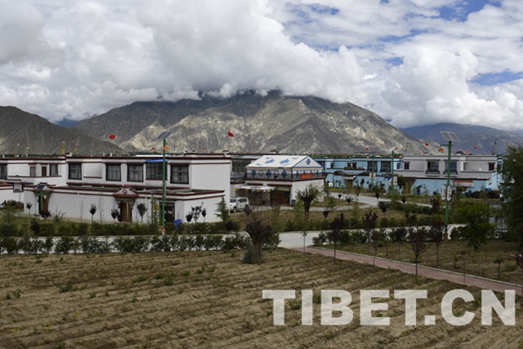 在四季吉祥村,十一世班禪考察了該村一站式服務中心、健身房、農(nóng)家書屋、村史館,并走訪慰問扶貧搬遷戶,了解他們的生產(chǎn)生活情況。圖為四季吉祥村。攝影:扎西