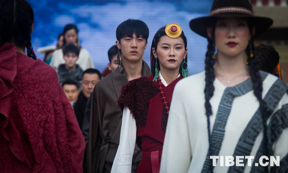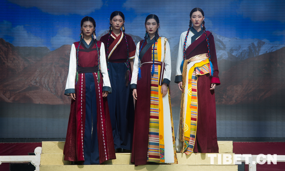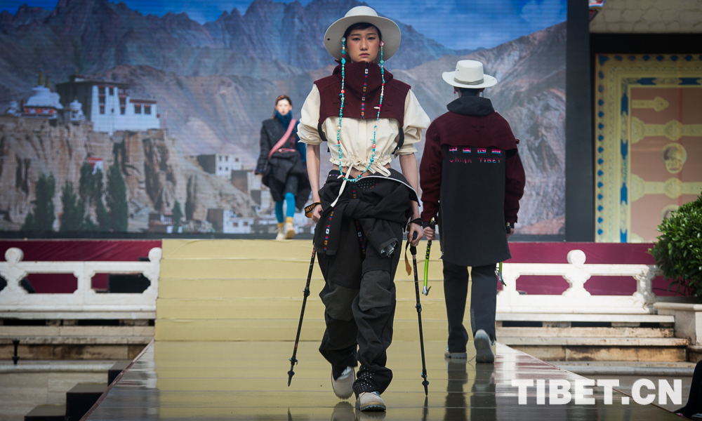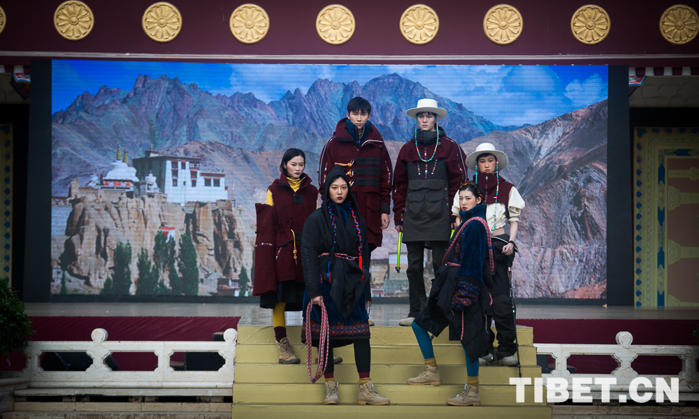 圖為身著經(jīng)過設計改版西藏民族服飾的模特。