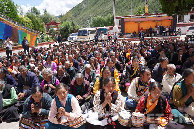十一世班禪為信眾進(jìn)行長(zhǎng)壽灌頂。攝影:王淑
