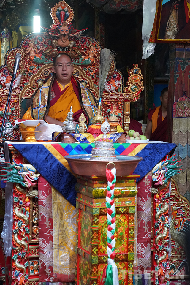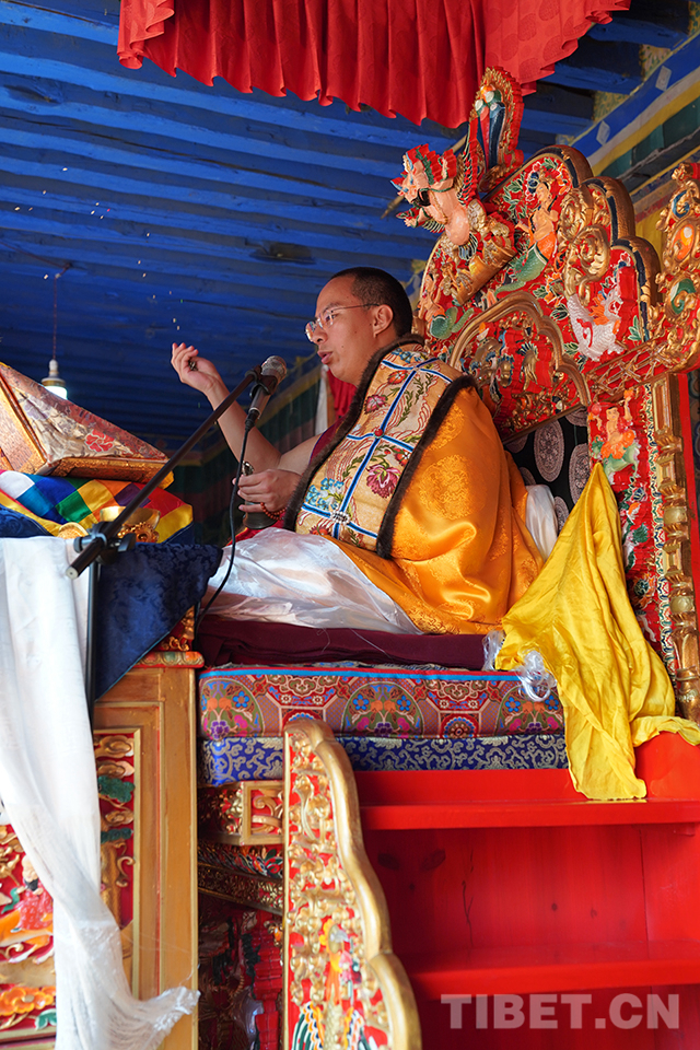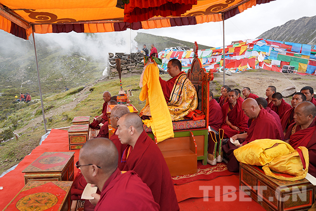 十一世班禪為僧俗信眾舉行長(zhǎng)壽灌頂儀式。攝影:王淑