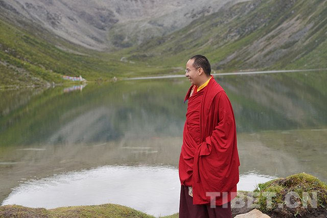 十一世班禪在圣湖邊祈禱。攝影:王淑