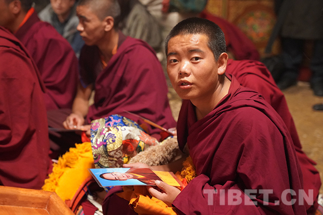 圖為得到十一世班禪法相的僧人。攝影:王淑