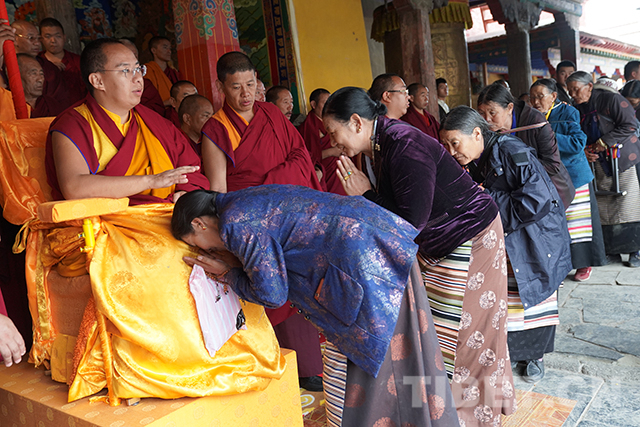 圖為得到十一世班禪摸頂賜福的信眾。攝影:扎西
