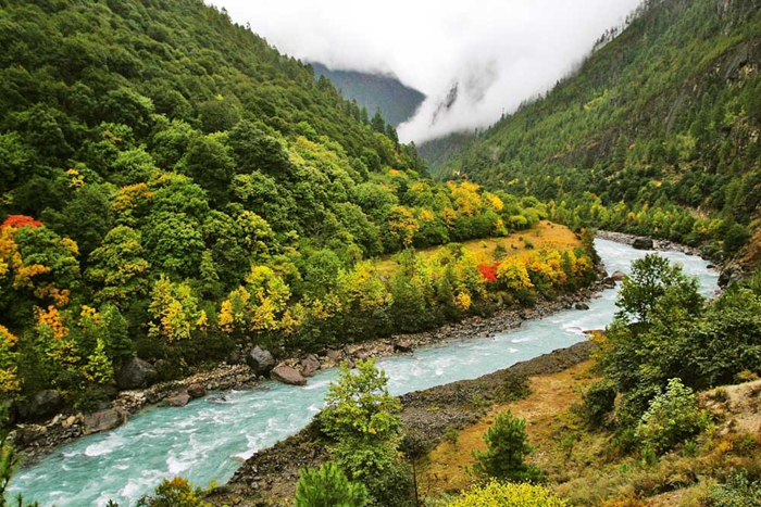 秋季的大峽谷由夏季單一的蔥蘢碧綠轉(zhuǎn)向秋季的五色斑斕。金色的松林、抬眼可見的冰川雪山,湛藍(lán)澄澈的天空,當(dāng)這一切倒映在碧綠的江水中,仿佛一幅生動(dòng)的油畫。