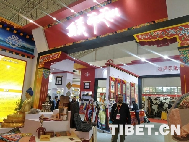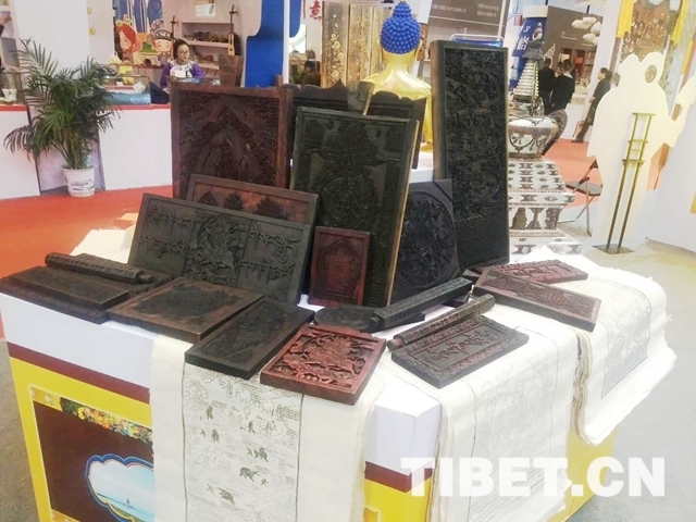 中國西藏網(wǎng)訊 10月25日至28日,第十三屆中國北京文化創(chuàng)意產(chǎn)業(yè)博覽會在京舉行。中國國際展覽館8011號館,紅瓦白墻的建筑風(fēng)格和異域元素的搭配吸引著眾人的目光。遠(yuǎn)遠(yuǎn)望去,門口立著一尊金身佛像,遠(yuǎn)處的墻上掛著唐卡,櫥窗里擺放著造型奇特的面具——西藏!走近點(diǎn),首先映入眼簾的是五顏六色的紙和染了墨水的木板雕刻字畫,再往里走,有木碗、石鍋、藏毯、藏香,還有布達(dá)拉宮造型的筆筒……各類文創(chuàng)產(chǎn)品讓人目不暇接。