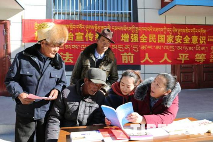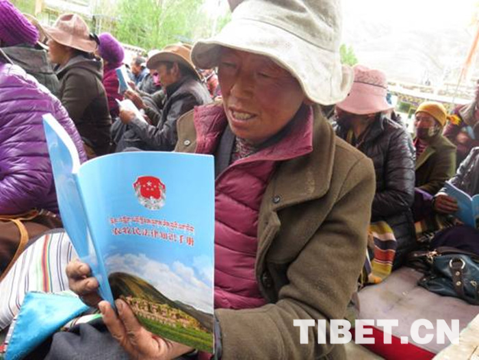中國西藏網(wǎng)訊 “這種文藝活動(dòng)加普法宣傳好??!通過這些宣傳活動(dòng),我們老百姓對(duì)國家的利民惠民政策和相關(guān)法律法規(guī)有了更深的認(rèn)識(shí)?!币晃皇掷锬弥稇椃ā沸麄髻Y料的阿佳啦對(duì)記者說。
