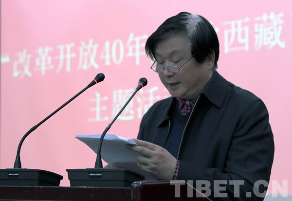 “四海共朝盛,高原展新顏。” 北京建藏援藏工作者協(xié)會副會長陳正榮受范小建會長委托,發(fā)表了熱情洋溢的致辭。他說,改革開放40年來,西藏各項事業(yè)取得了歷史性成就、發(fā)生了歷史性變革。習近平總書記高度重視西藏工作,提出了治國必治邊、治邊先穩(wěn)藏的重要戰(zhàn)略思想,確定了“十二五”3305億元和“十三五”6576億元中央支持西藏的一大批重點建設(shè)項目,西藏發(fā)生了翻天覆地的變化?!伴_放發(fā)展的新西藏凝聚了歷屆中央集體的領(lǐng)導智慧,也凝聚著各族人民的奮斗,其中也有在座各位干部的心血和汗水?!?015年中央第六次西藏工作座談會上,習近平總書記曾說“在高原上工作,最稀缺的是氧氣,最寶貴的是精神……” 范小建會長希望,大家心連心一家親,并大力傳承發(fā)揚老西藏精神。