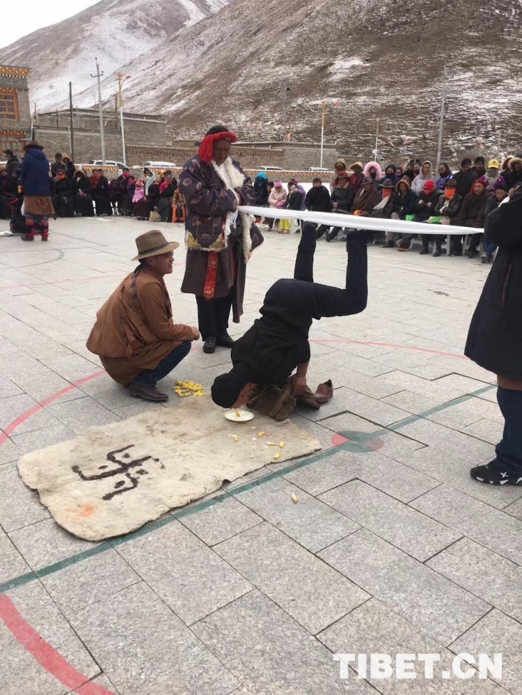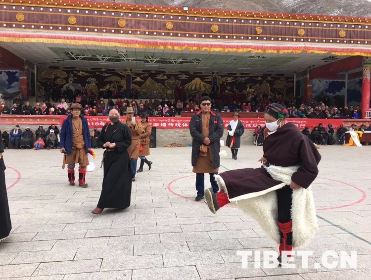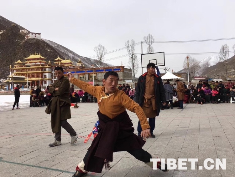 羅松戰(zhàn)斗說,現(xiàn)在鄉(xiāng)黨委政府對(duì)舞蹈隊(duì)的支持力度一年比一年大,我們到祖國的天南地北跳舞底氣足,心里熱、勁頭大。在廣場陽面有幾個(gè)男人在做投擲牛拐骨的競技游戲,幾名婦女玩羊拐骨,還有一些人在跳羊毛毽子,記者駐足觀望片刻。嚯,有的能連續(xù)跳100多下,多半?yún)⑴c者還會(huì)后腳轉(zhuǎn)身跳……笑聲、歡呼聲一陣陣傳入耳中。男子投擲牛拐骨的游戲,比較刺激,記者也是第一次見。其規(guī)則是參與者先在十米開外的地方用力將一枚牛拐骨投向石壁,待牛拐骨反彈過來,參與者就得接住,越多越好。副鄉(xiāng)長鄭叢辛告訴記者說:“每年的初一、初四,附近村社的農(nóng)牧民群眾都會(huì)來這里進(jìn)行各種民間游戲比賽,如藏棋、拔河、藏牌等,一些幾近失傳的活動(dòng)又恢復(fù)了生機(jī)。還要舉行一些具有現(xiàn)代風(fēng)格的時(shí)裝秀、歌詠比賽等。”