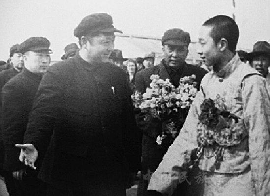 圖為1951年4月22日,習(xí)仲勛(前左)率領(lǐng)西北軍政代表熱烈歡迎途經(jīng)西安赴北京的十世班禪大師(前右)。圖片來(lái)源:中國(guó)網(wǎng)