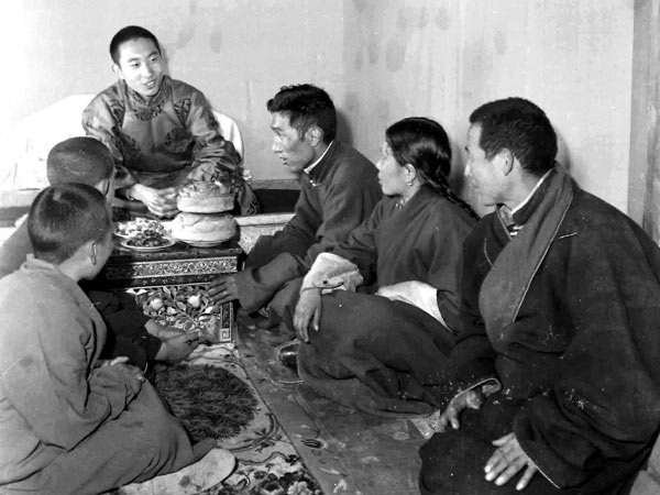 圖為十世班禪在藏區(qū)與群眾座談。圖片來(lái)源:中國(guó)網(wǎng)