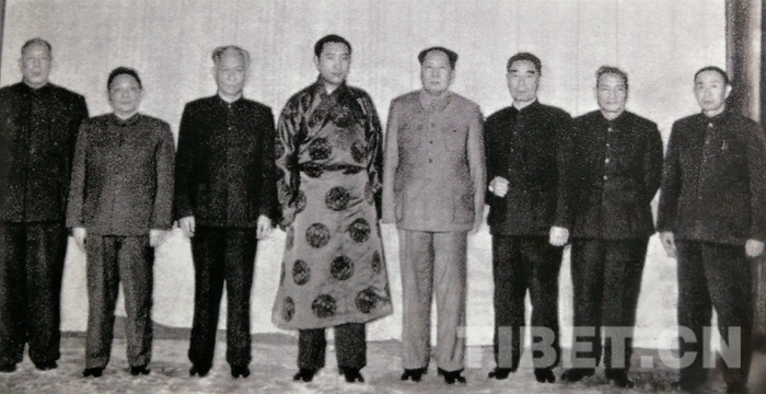 圖為1959年4月29日,中央駐藏代表張經(jīng)武在北京飯店舉行宴會,慶祝西藏自治區(qū)籌備委員會成立三周年。右起:賀龍、阿沛?阿旺晉美、張經(jīng)武、十世班禪、陳毅、烏蘭夫。