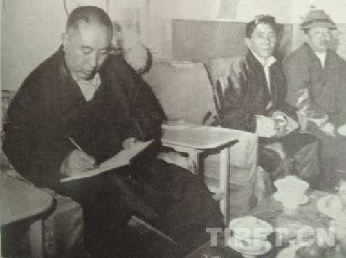 圖為十世班禪在拉薩聽取群眾意見并記錄。圖片翻拍自《西藏文史資料選輯》