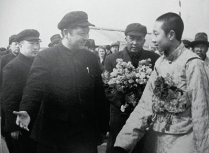 1951年4月中旬,習(xí)仲勛與十世班禪第一次會面。那時,十世班禪率領(lǐng)班禪堪布會議廳官員赴京途經(jīng)西安,習(xí)仲勛作為西北局和西北軍政委員會主要負(fù)責(zé)人,到機場迎接。班禪走下飛機時,一個眉清目秀、和善聰慧、舉止文雅、彬彬有禮的英俊藏族少年活佛形象,出現(xiàn)在習(xí)仲勛的眼前。在飛機舷梯下,十世班禪緊緊握住習(xí)仲勛的手,心情激動地說:“我們是專程去北京向毛主席致敬的!我要把藏族人民對中央人民政府和毛主席的良好祝愿親口轉(zhuǎn)達(dá)給毛主席?!痹诋?dāng)晚歡迎會上,十世班禪表示堅決擁護(hù)中央人民政府,決心與西藏各界愛國人士一道為西藏的解放和藏族人民的團結(jié)努力奮斗?!坝兄静辉谀旮摺?,十世班禪的愛國熱情和坦誠豪爽的性格給習(xí)仲勛留下了深刻的印象。當(dāng)天,習(xí)仲勛把他接到西北局大院自己家中,十世班禪與習(xí)仲勛的大兒子習(xí)富平同齡,兩人很快就熟稔起來。