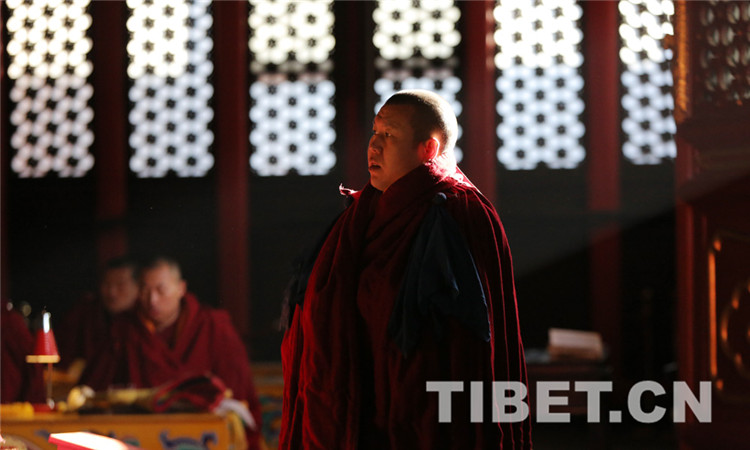 8時30分,法會開始,教職人員按既定儀軌,誦讀經(jīng)文,虔誠祈禱,法會現(xiàn)場肅穆莊重。(中國西藏網(wǎng) 記者/楊月云)