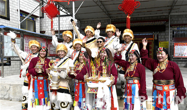 圖為阿壩林卡社區(qū)老年文藝隊在藏歷新年初一的演出圓滿結(jié)束。