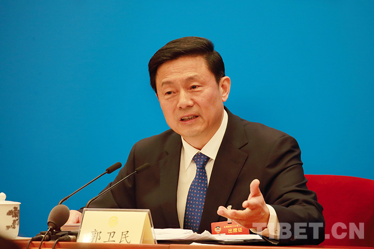 圖為大會新聞發(fā)言人郭衛(wèi)民回答記者提問。攝影:陳衛(wèi)國