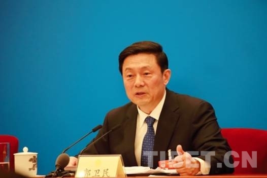 圖為大會新聞發(fā)言人郭衛(wèi)民回答記者提問。攝影:陳衛(wèi)國