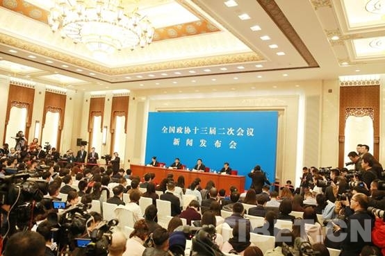 圖為全國政協(xié)十三屆二次會議新聞發(fā)布會現(xiàn)場。攝影:陳衛(wèi)國