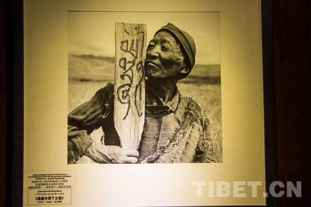 圖為藍志貴攝影作品《桑登分到了土地》,照片表現(xiàn)了西藏翻身農(nóng)奴得到土地。