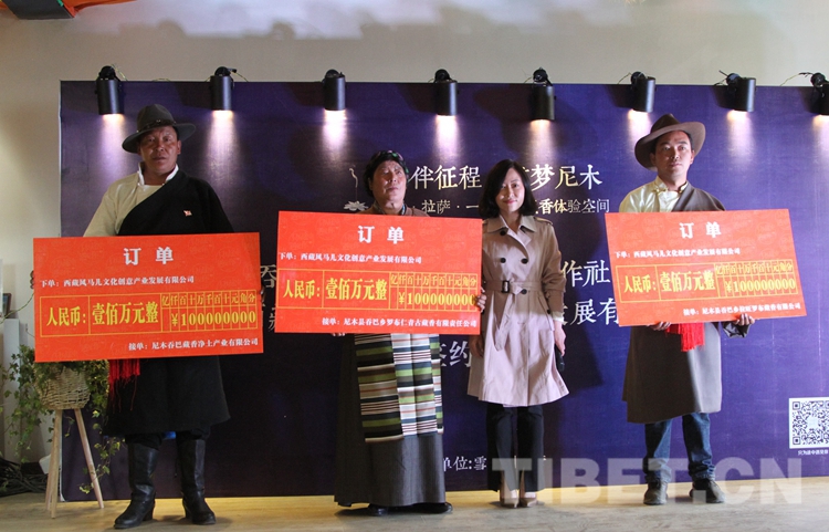 圖為三家尼木藏香專(zhuān)業(yè)合作社各從風(fēng)馬兒文創(chuàng)獲得100萬(wàn)元訂單。