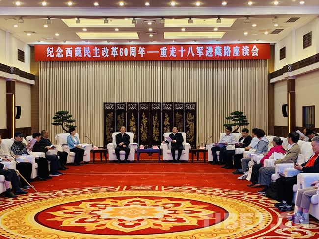 中國西藏網(wǎng)訊 5月28日,由中國西藏文化保護(hù)與發(fā)展協(xié)會、四川省委統(tǒng)戰(zhàn)部主辦,四川省委藏區(qū)辦、中國西藏雜志社承辦的“紀(jì)念西藏民主改革60周年——重走十八軍進(jìn)藏路”座談會在四川省成都市舉行。中央統(tǒng)戰(zhàn)部有關(guān)領(lǐng)導(dǎo)、四川省委省政府有關(guān)領(lǐng)導(dǎo)、十八軍老戰(zhàn)士及其后代、涉藏研究知名專家學(xué)者、四川省直有關(guān)單位和藏區(qū)有關(guān)州縣負(fù)責(zé)同志、新聞媒體共約100余人參加此次會議。四川省委常委、統(tǒng)戰(zhàn)部長田向利主持會議。