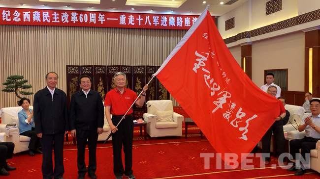圖為重走十八軍進(jìn)藏路活動授旗儀式。