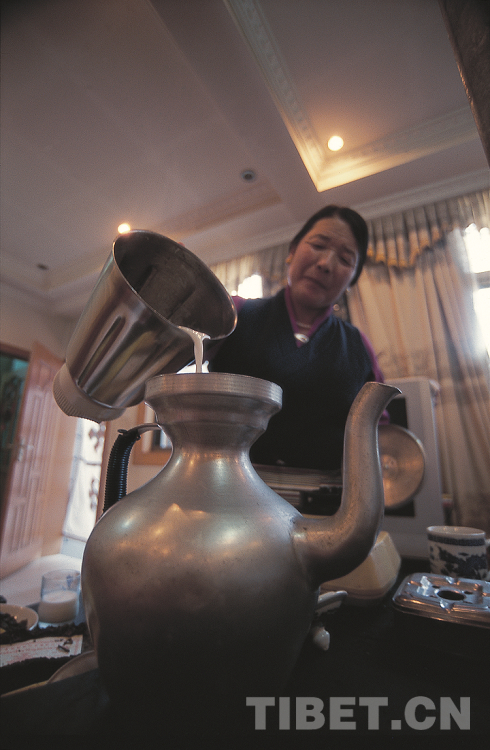 另一位在北京工作的藏族好友,每次去他家做客總能喝到純正的酥油茶;他的冰箱冷凍室里總是塞滿了黃黃的酥油……他說(shuō),每次他回拉薩或是家鄉(xiāng)的朋友來(lái)北京看他,必定會(huì)帶上酥油和茶葉。在內(nèi)地十多年了,愛喝酥油茶的習(xí)慣怎么也改不了?,F(xiàn)在他去了外地工作,我想我要是去看他,也會(huì)帶上一塊厚厚的酥油和一大包他喜歡的茶葉!