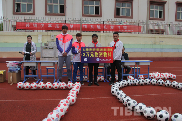 得知香格里拉紅旗小學和金江鎮(zhèn)小學是全國青少年足球特色學校,都組建了自己的足球隊,孩子們非常熱愛足球運動,許湛和鄭超分別于9日和10日來到兩所學校跟小隊員們互動,現(xiàn)場足球教學,并為兩所學校分別捐贈3萬元物資,包括上百個足球、服裝和學習用具等。