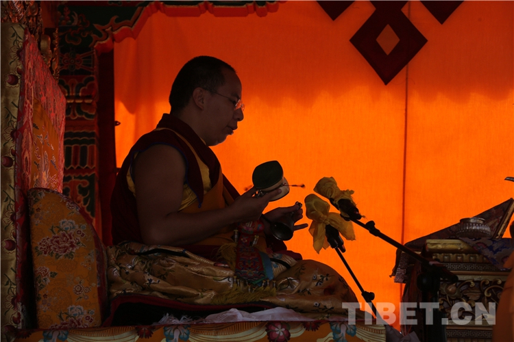 圖為十一世班禪為僧俗信教群眾舉行長(zhǎng)壽灌頂 攝影:王淑